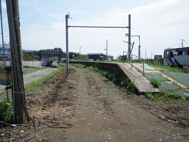 最初に向かったのは奥松島。JR仙石線の高城町駅~陸前小野駅間が現在も不通になっているうちの一駅で「東名(とうな)駅」に行きました。ここも、被害を相当受け、すべてが流された感じです。ダンプがせわしなく往復しています。