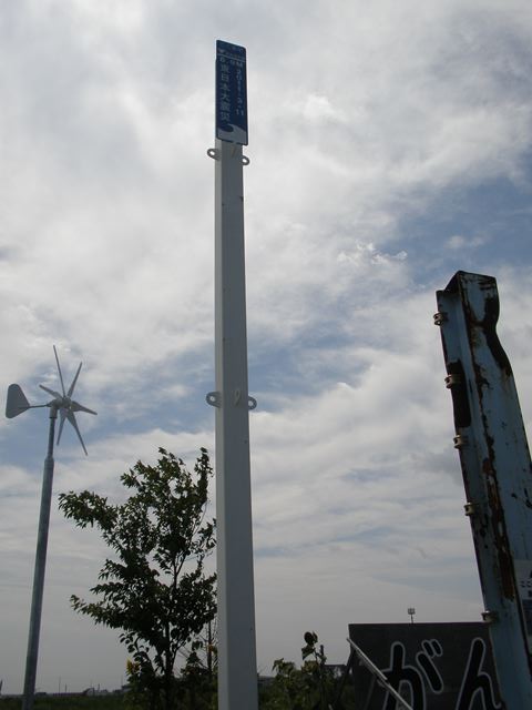 ここも被害を相当受け、周りには何もなくなってます。献花台が胸を打ちます。この看板の左に津波の到達点を表す鉄柱がありました。