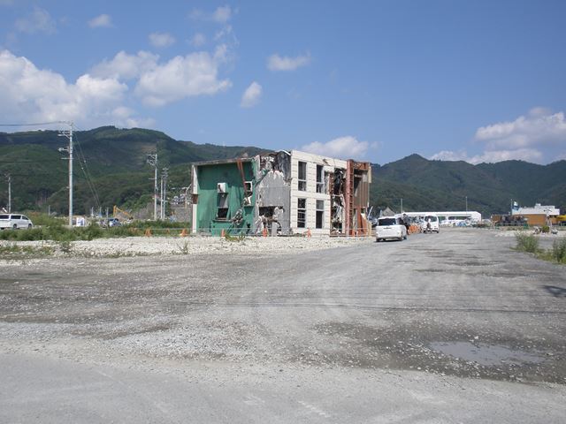 空き地が多くなっているのが良くわかります。辛うじて鉄骨造の建物が残っています。しかし、流された建物などはすべて片づけられていて、住民の方やボランティアの方の苦労があってこそと感じます。