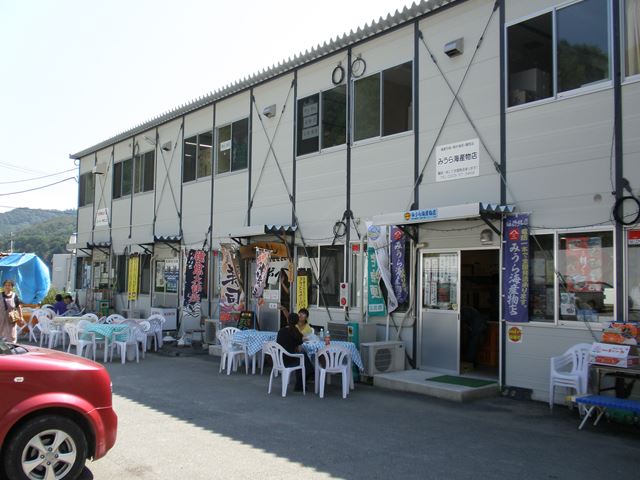 ちょっと道を間違えたけど、無事に「雄勝店こ屋街」に到着。かつては雄勝町庁舎、石巻市に統合されてから雄勝総合支所があった場所です。