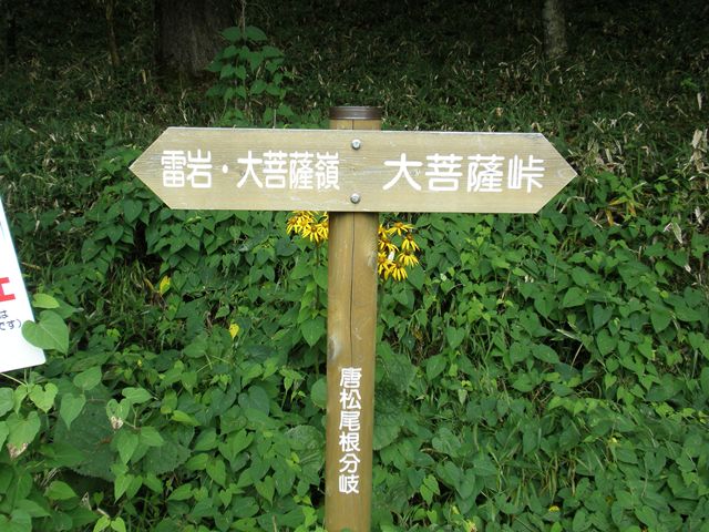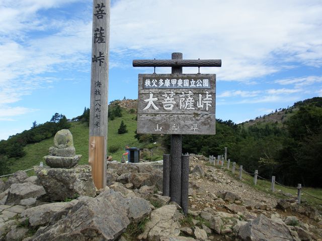黙々と歩く。人もいない。一人で来たことをちょっと後悔。でも一緒に登る人なし(笑) 体が慣れてきてペースもつかめ始めた頃に、第2ポイントの「大菩薩峠」に到着!福ちゃん荘からここまでで約40分。大菩薩嶺は山頂が山林に囲まれているため、ここの峠に来て絶景を堪能する人が多い。
