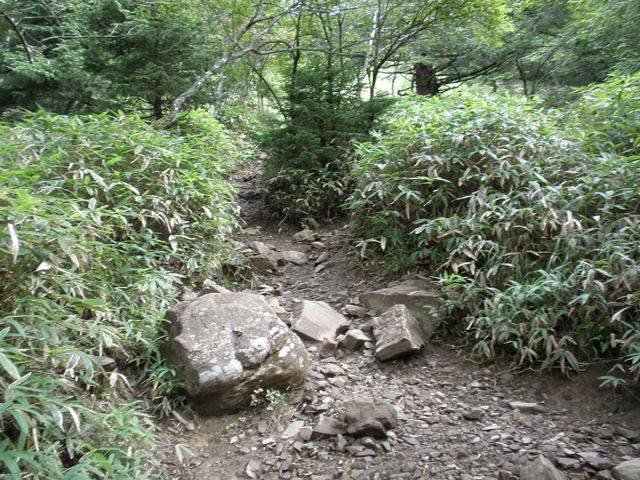 さて、途中まで引き返し、雷岩から下山です。ここも予想以上に急勾配で、足に負担がかかります。途中、やっぱり岩場もあり登りも大変でしたが、下りも結構大変です。これなら富士山の方が距離は長いけど楽かもしれませんね。