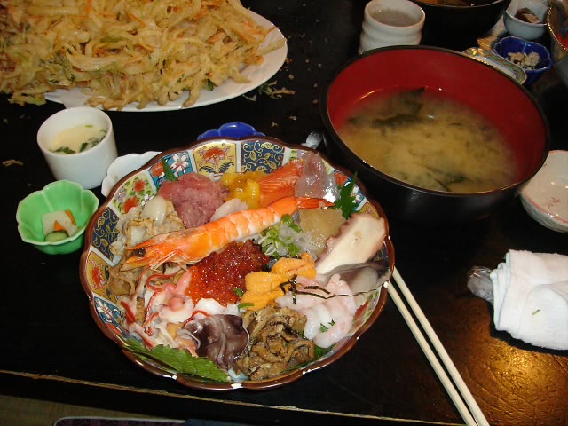 海鮮丼。味噌汁のお椀が巨大です。(これでココの意気込みが分かります。)
