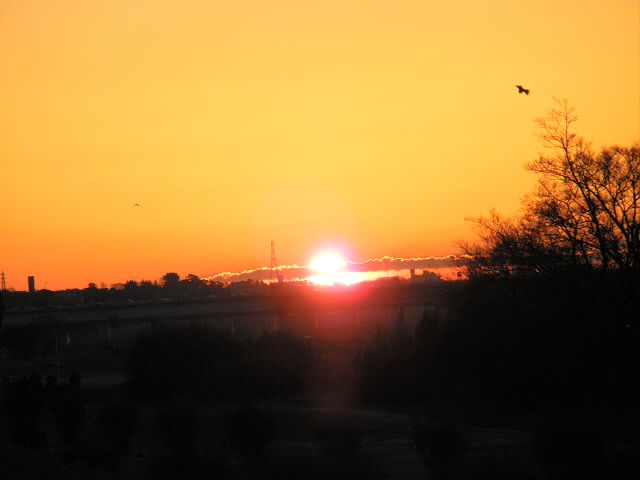 近くの多摩川に日の出を見に行きました。ここ何年か日の出が見られているので恒例になってます。