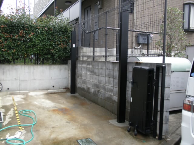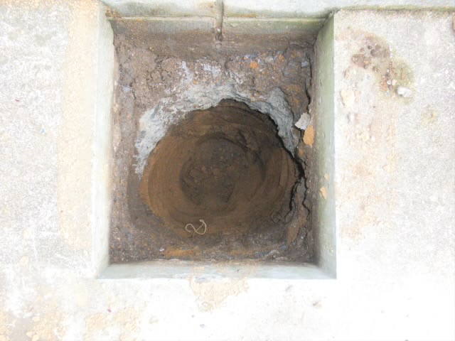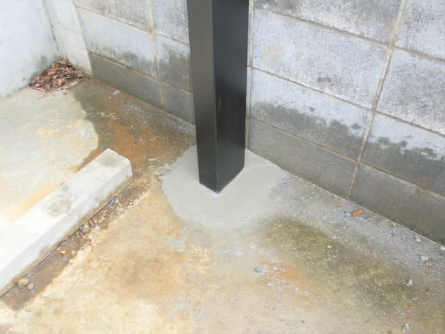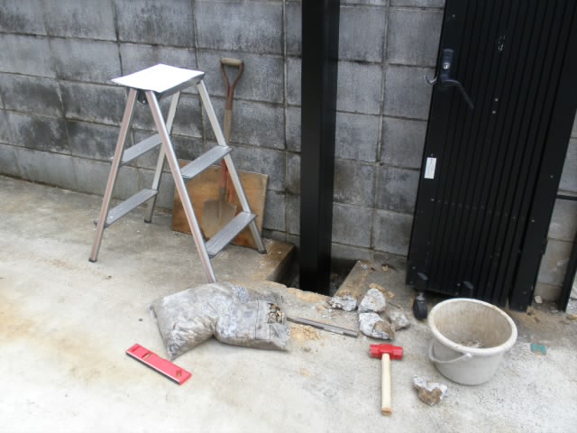 もともとカーポートの基礎を埋められるようにコンクリートに穴が開いているのですが、隣りの塀の基礎があって・・・