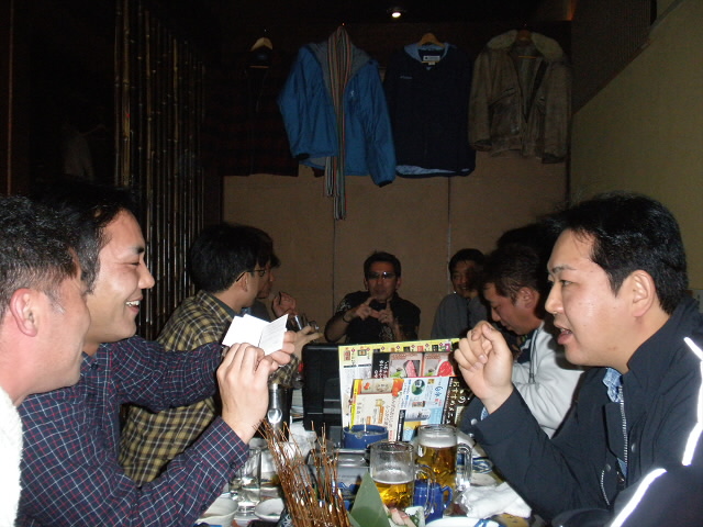 総勢11人、平塚や信州駒ヶ根からも遠路はるばる来て頂き1次会というのに4時間以上も粘ってました。仕事してる4時間は長いけど、気の合う仲間との4時間はあっという間でした。あんな話、こんな話、むふっ。