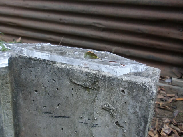 昨日はとっても冷え込んだのか、近くの神社で厚い氷が張ってました。