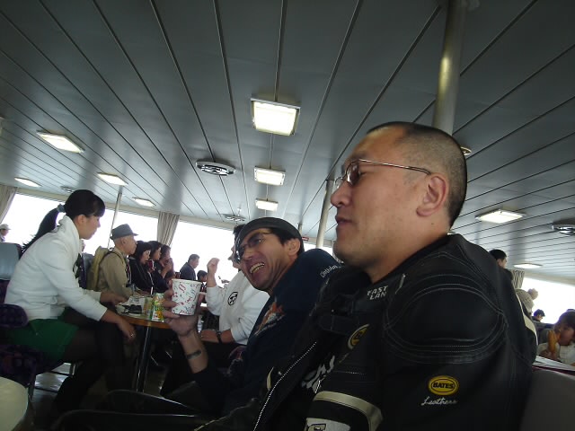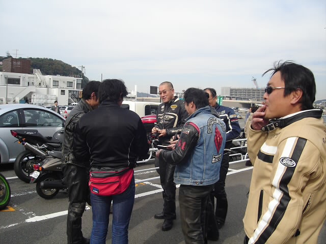 午前10時、久里浜港に着いたはいいが11台の大所帯の為、次の便に乗ることに。次の便が到着するまでしばし談笑。