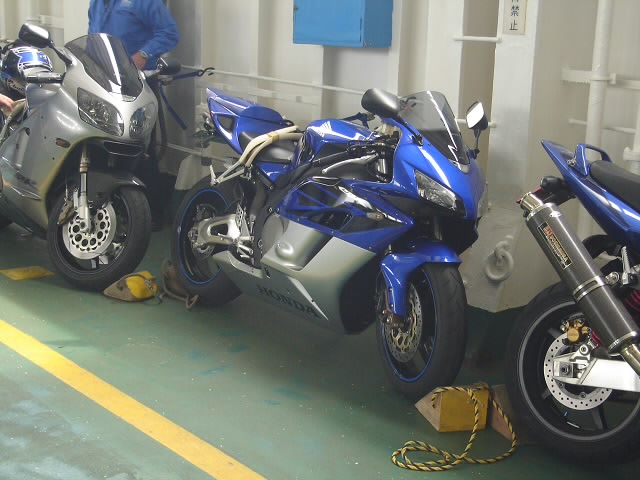 バイクと乗るのは初!ちょっと緊張しながら船の中へ。。。
