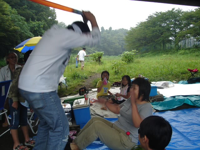 さてさて、お腹も満たされたことだし、少し余興でも。最近やることもなかった「スイカ割り」