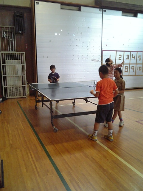 そんな安物でもうれしいらしく(豚に真珠にしなくて良かった)早速近くの児童センターに。友達も来ていたので卓球大会に。隣ではカミサンと娘たちがバドミントンやってました。久しぶりに家族そろっての運動でした。。。