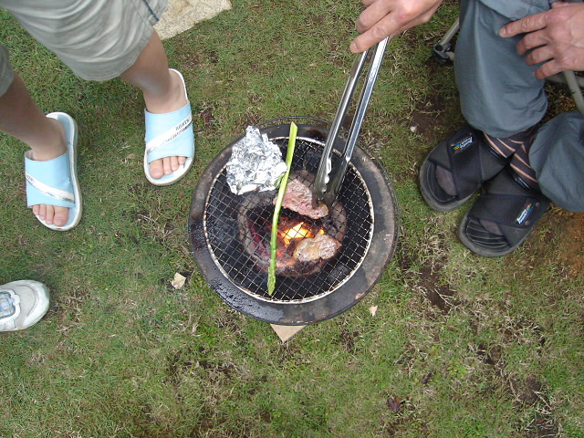 そんな連絡があってしばらくしたら、予報通り雨が上がり、何とかBBQできる状況に(喜)やっぱりヤツは雨男だったな。毎回必ずではないが、かなりの確率で雨や大風が。。。よっぽど日ごろの行いが悪いのかねぇ。