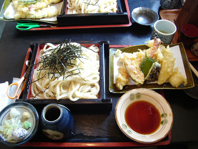 注文したのは「合わせ天ざる大盛り」要はイカ天ぷらと野菜天ぷらが一緒になったざるうどんってことですね。