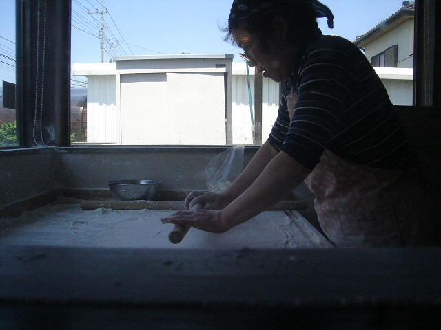 お店は県道沿いにあってすぐ分かります。店内は元気の良いおばちゃんばかり4,5人で切り盛りしていました。ここは手打ちの実演なんぞもやっていて「ああーこうやって作るのね」ってこの年になって感心しちゃいました。