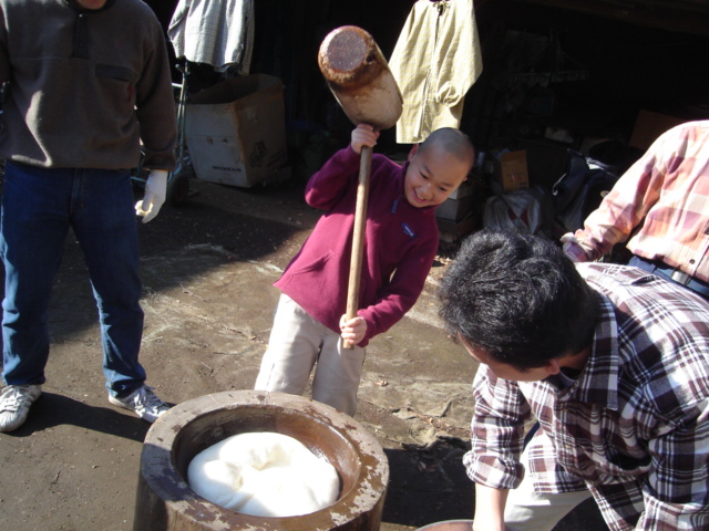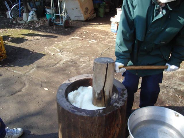 で、餅つきも昔ながらに臼と杵を使います。それも米からつきます。