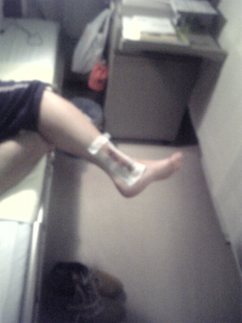 で、手術した足を写メしたんですが、あまりにもグロいので遠くから撮りました。おまけにピンボケで良かった・・・