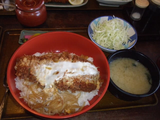 自分はソースカツ丼、他にエビづくし定食、ヒレカツ定食などなど、息子はカツ丼(沼田)って特大のを頼んでみた。