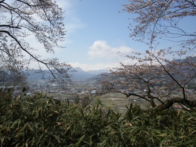 遠くには冠雪した山々が・・・桜と雪山が見事です。