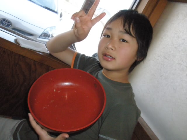 黙々と食べ始め、半分位から苦しくなったらしいです。ちょっとだけ手伝ってもらって