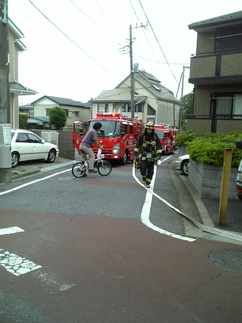 そこまではよかったのですが、家を出て駅に向かおうと、なんか焦げ臭い…しかもウチの隣のアパート!ベランダから煙り!えっ!もしかして火事!?